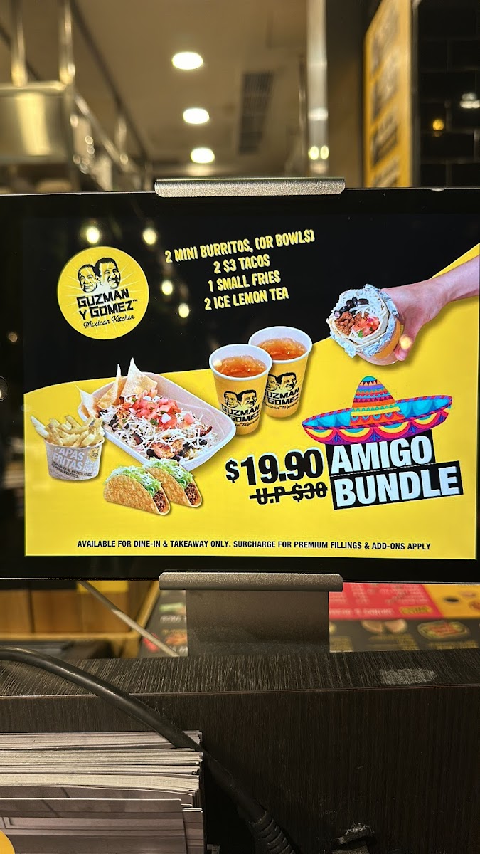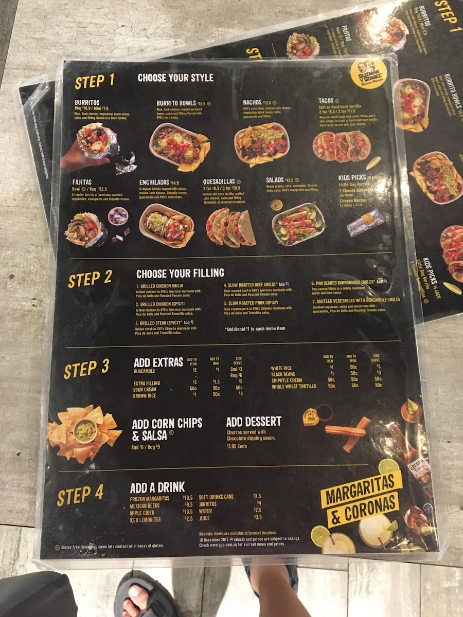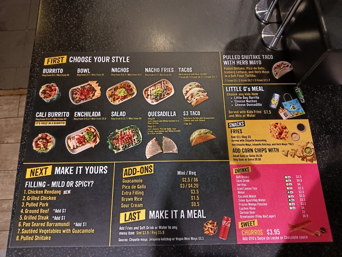 Introducing the menu at Guzman y Gomez - #01 - 176 / 177 / 178 Northpoint City brings the vibrant flavors of Mexico right to your table. Located at 1 North Point Dr, this outlet impresses with a delightful selection that tantalizes taste buds. Start your day with their Breakfast Toast, featuring creamy avocado or guacamole on freshly baked sourdough for just SGD 4.90 to SGD 8.50. For a sweet finish, indulge in their Churros, dusted with cinnamon sugar and served with GYG’s signature sauces for SGD 3.95.